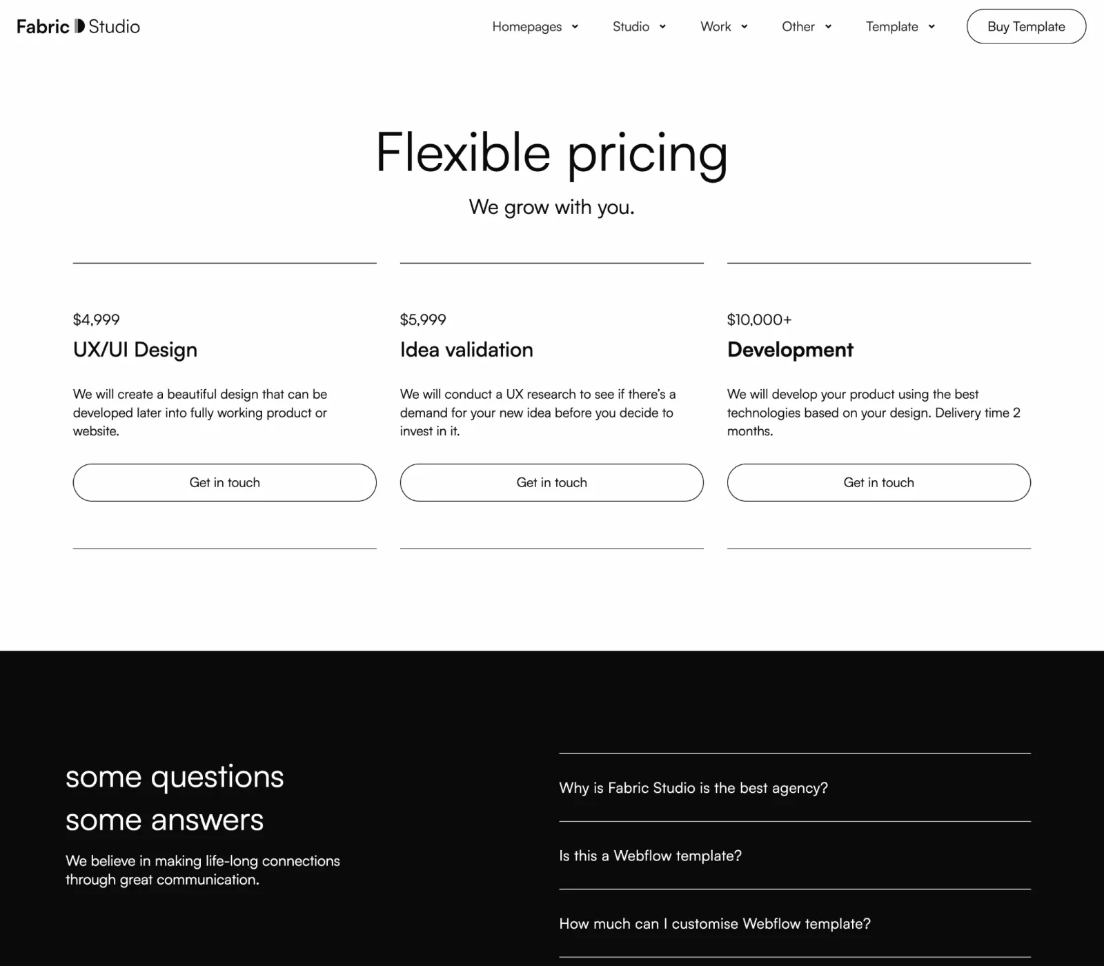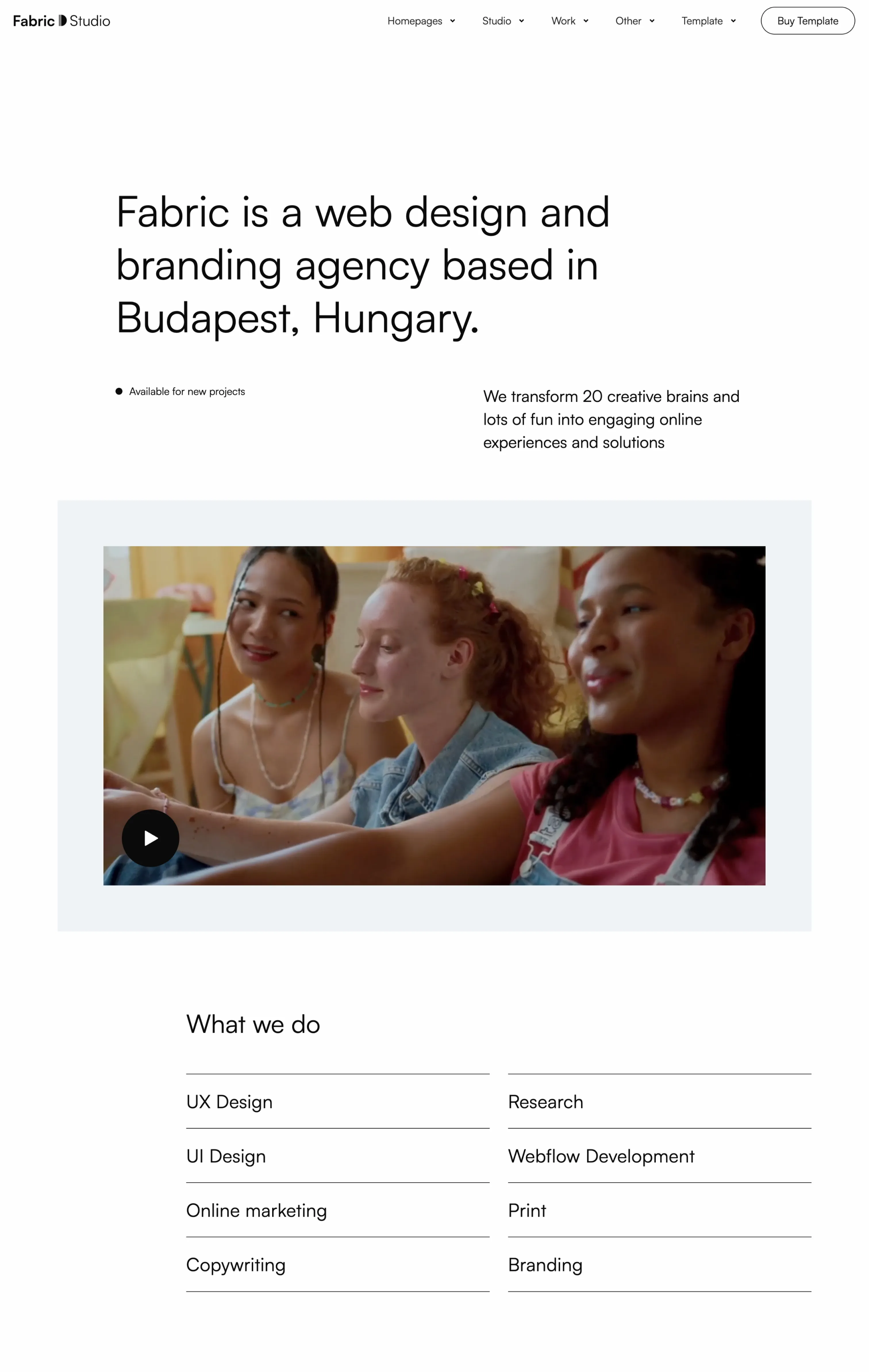 Fabric Studio is a top-notch Webflow template for agencies and designers.