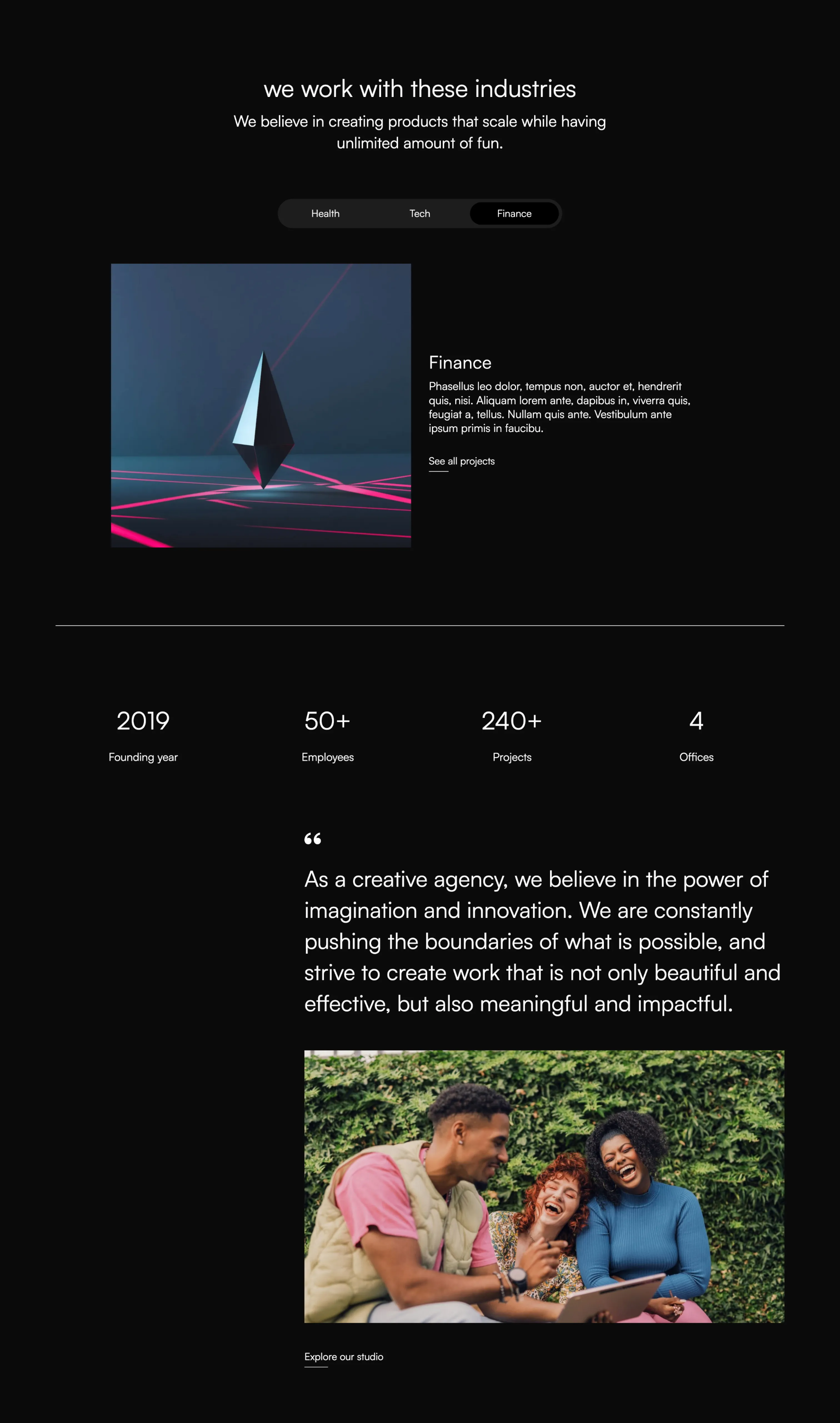 Fabric Studio Webflow Template comes with everything you need to to get your agency or portfolio website off the ground - fast.