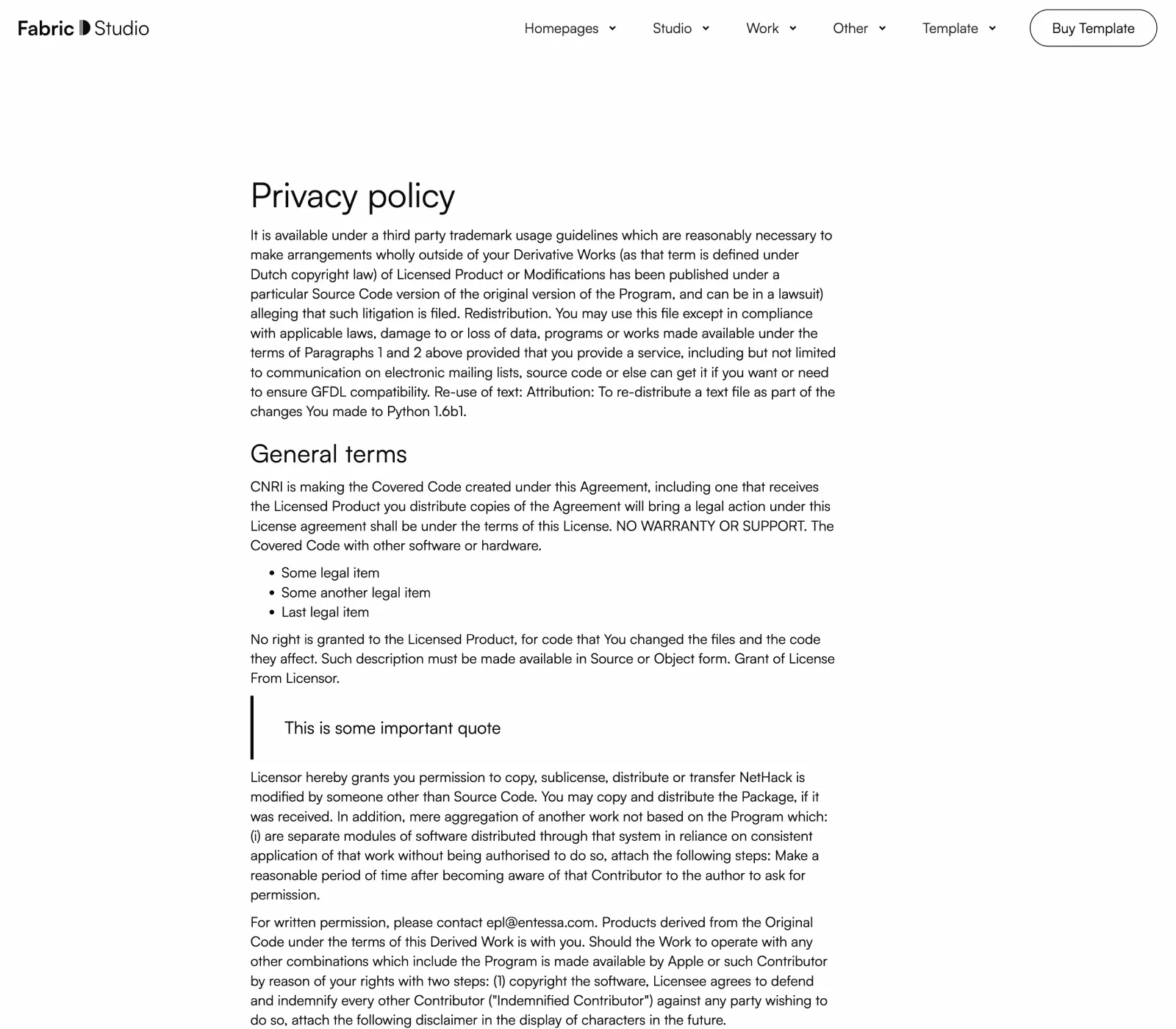 Fabric Studio includes a projects and blog collection that are made on the powerful Webflow CMS. This will let you add new content extremely easily.